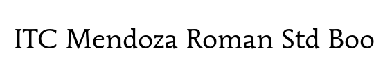 License / Copyright: ITC Mendoza Roman is a trademark of International Typeface Corporation Registered in U.S. Patent and Trademark Office and may be registered in certain other jurisdictions.